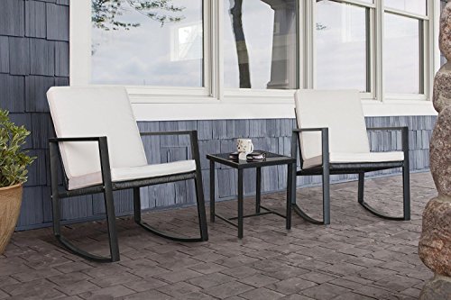 Flamaker 3 Pieces Patio Furniture Set Rocking Wicker Bistro